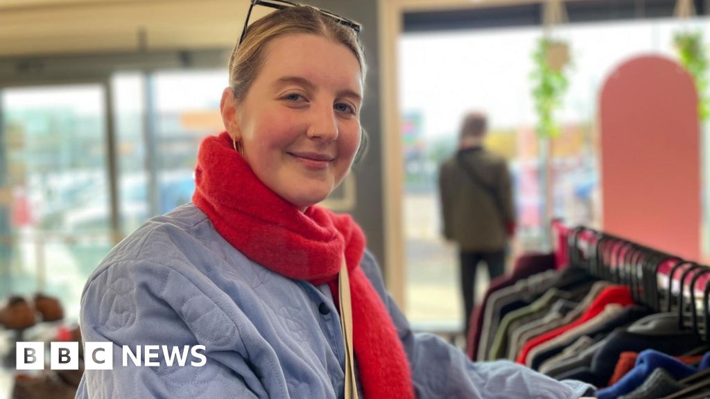 BBC/Simon ThakeAcross the city, those in the Sense charity shop in Hillsborough Barracks can combine a hunt for vintage items with fresh produce at the Morrisons supermarket next door.