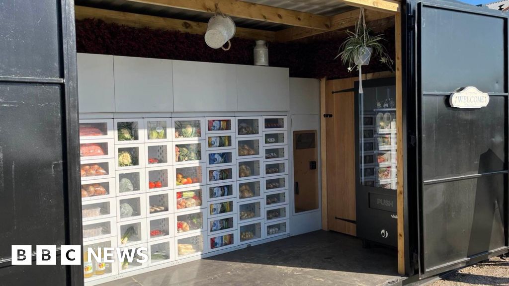 The vending machines are housed in shipping containers in front of the farm shop building. The owners are also planning to open a self service cafe in one of them.